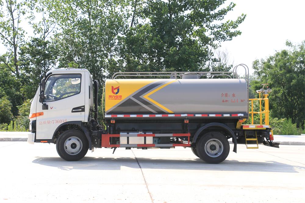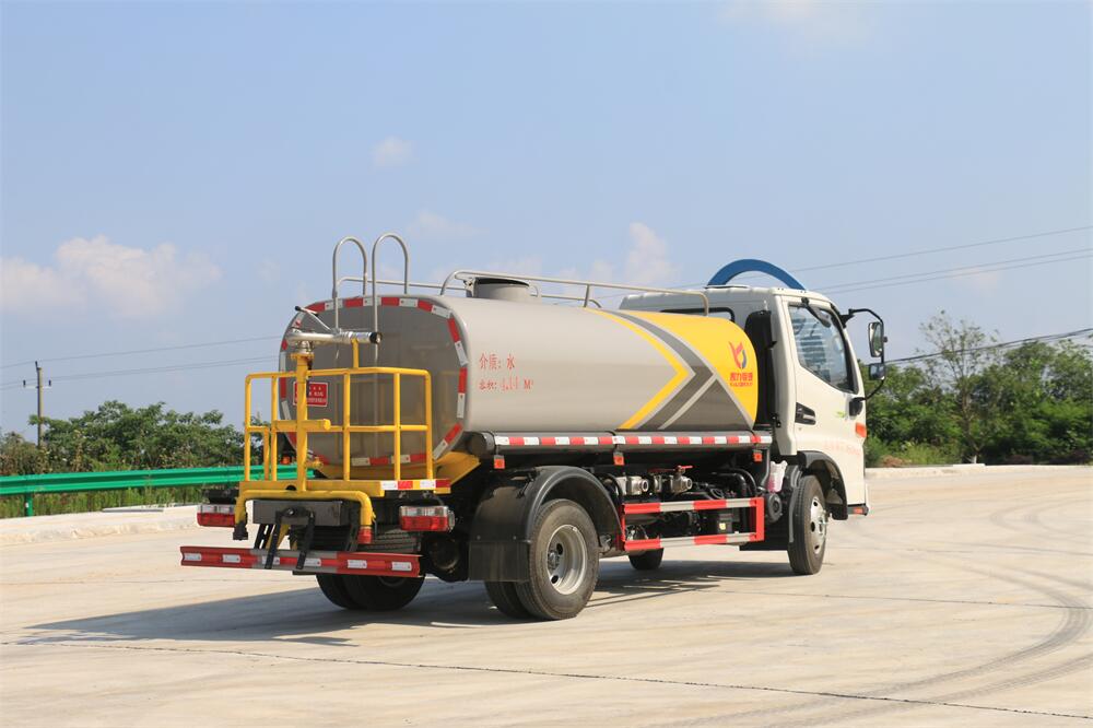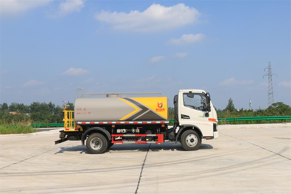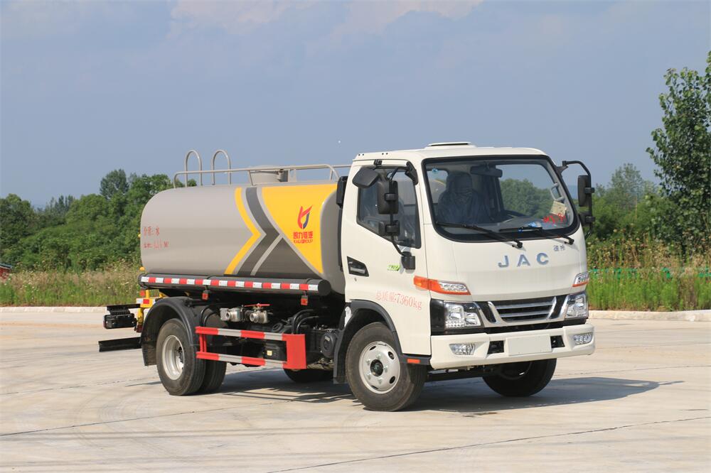 灑水車前裝有鴨形噴嘴或圓頭沖嘴,后面裝有圓柱開灑水噴嘴或蓮蓬頭噴嘴,后部有一工作平臺,裝配有水炮。后部還可裝8個噴嘴(選裝)。