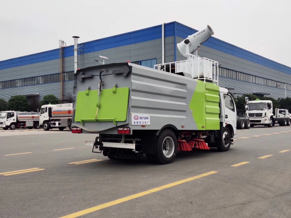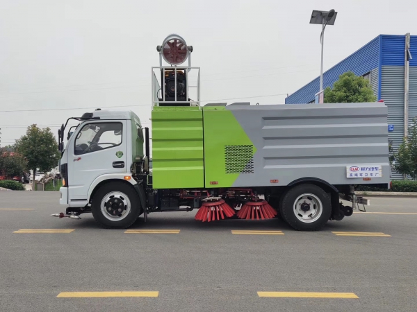 1.采用吸掃混合的方式收集垃圾,濕式除塵、電液,液壓傾翻卸料的作業方式對路面進行清掃作業。