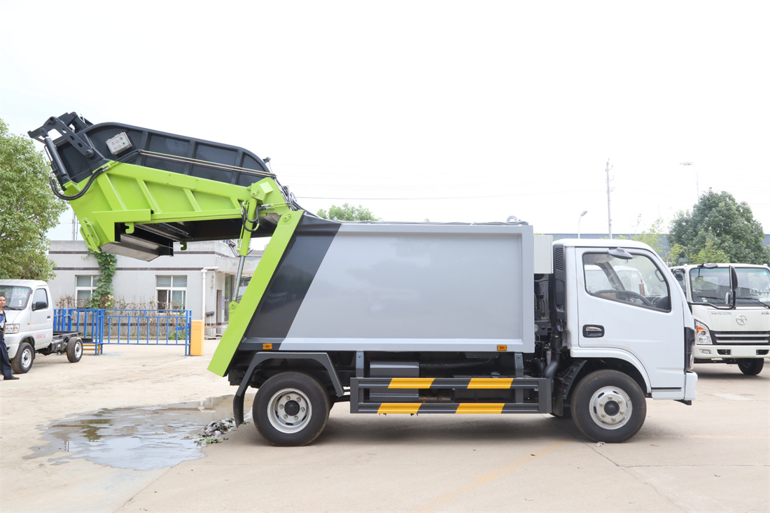 上裝配置:垃圾箱容積:6方,新款平面弧形廂體,廂體材料為武鋼優質碳鋼,PLC一鍵操作**,手電一體操作模式,兩側雙電控,帶駕駛室內操作,底板支撐加強,雙向壓縮,開放式易清潔污水箱。壓縮式垃圾車采用機電液一體化技術,借助機、電、液聯合自動**系統、電腦**、手動操作系統,通過填裝器和推鏟等專用裝置,實現垃圾倒入、壓碎或壓扁、強力裝填,把垃圾擠入車廂并壓實和推卸,污水全部進入污水廂,解決了垃圾運輸過程中的二次污染的問題。壓縮式垃圾車具有自動反復壓縮以及蠕動壓縮功能,壓縮比高、密封性好、裝載量大﹑操作方便、環保性好﹑整車利用功率高等優點。作業自動化,垃圾收集方式簡便、高效。后翻轉機構選裝:1、掛塑料桶式翻轉機構;2、掛鐵桶式翻轉機構;3、擺臂式翻轉機構; 4、簸箕斗式翻轉機構。