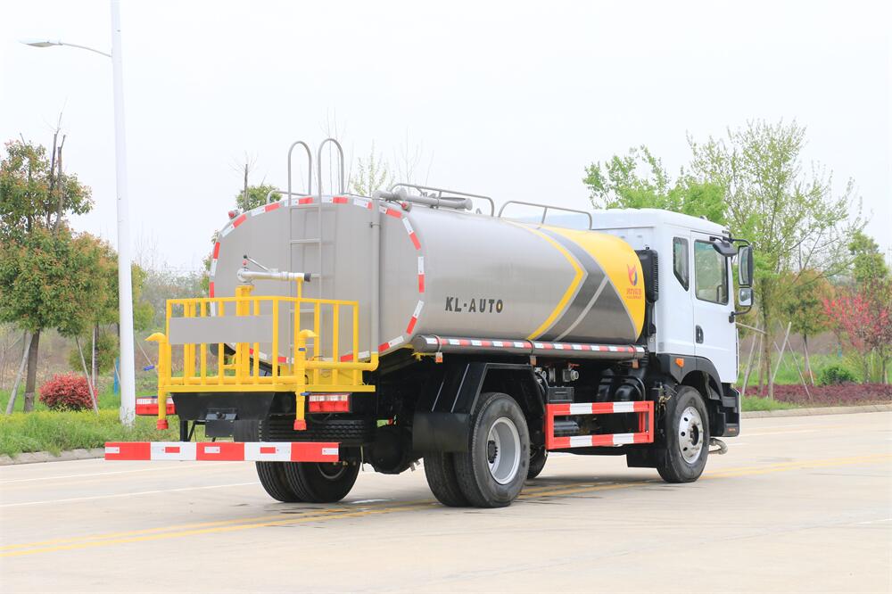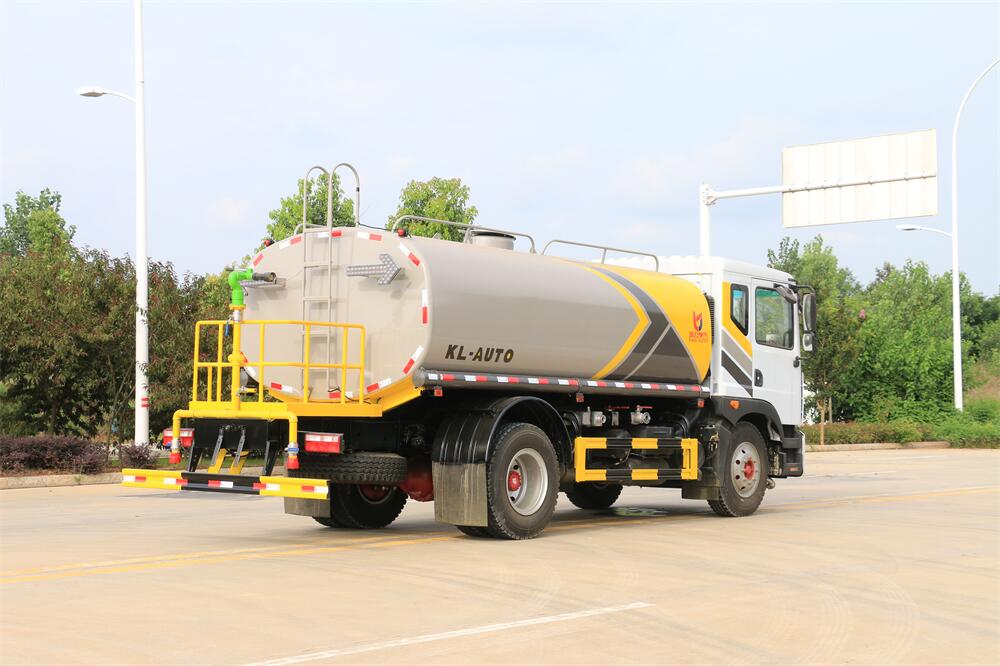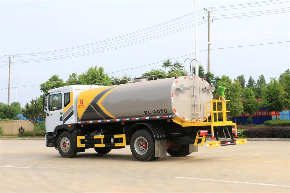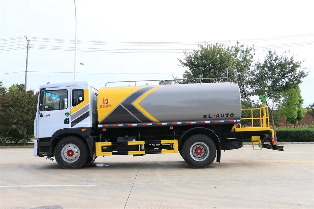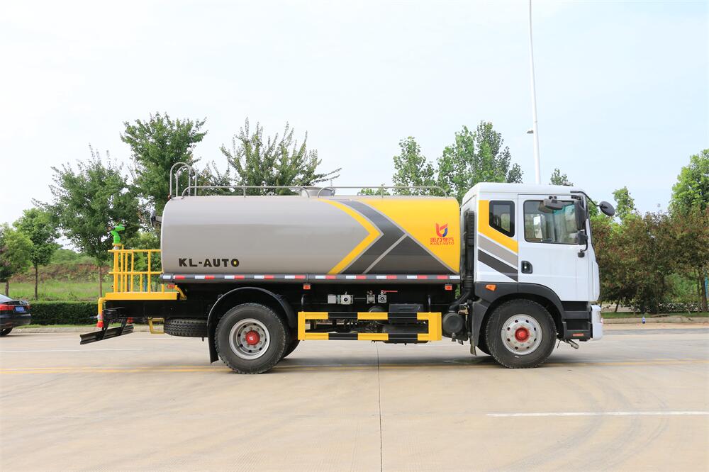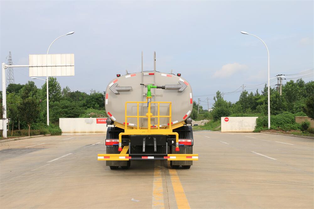 灑水車前裝有鴨形噴嘴或圓頭沖嘴,后面裝有圓柱開灑水噴嘴或蓮蓬頭噴嘴,后部有一工作平臺,裝配有水炮。后部還可裝8個噴嘴(選裝)。