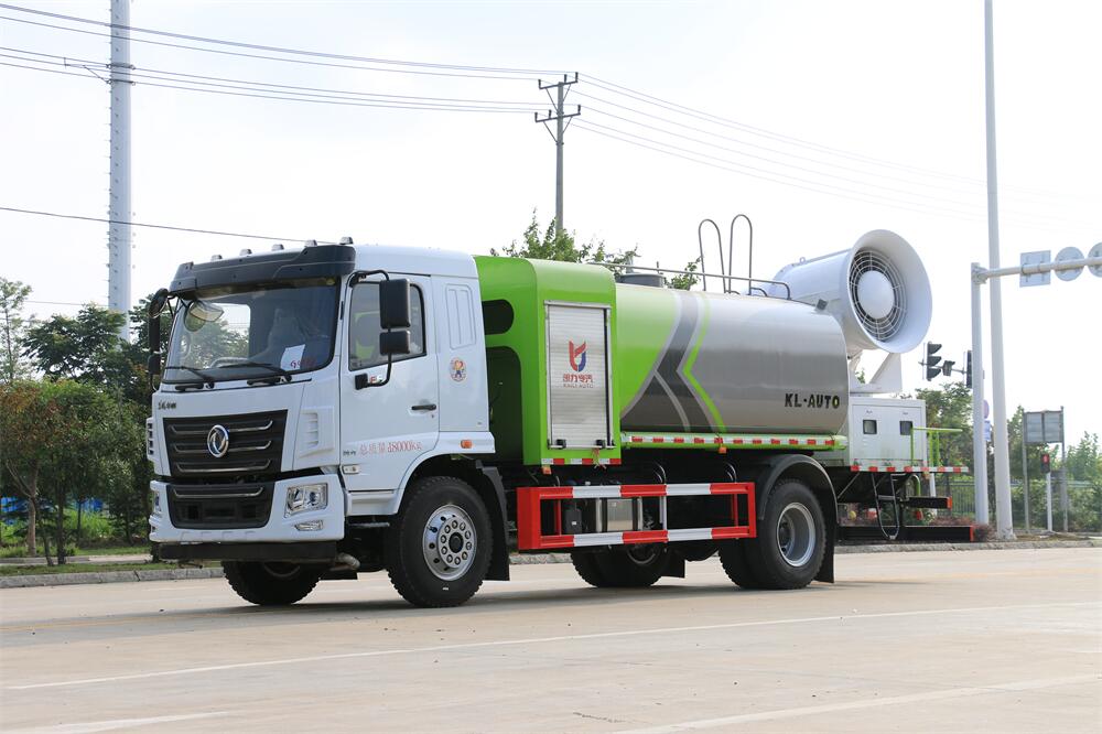 上裝配置:罐體容積為 12立方,選配風送式霧炮機組射程30米、40米、50米、60米、80米、100米、120米霧炮,罐體鋼板為4mm碳鋼Q235材質,罐內隔板具有防波作用,以減輕汽車行駛時罐體液體沖擊,罐體及整車外形尺寸按照公告。帶大功率專用灑水泵,泵可自吸自排,整車前沖、后灑、側噴、帶65消防接口,后平臺配CLW-50、CLW-60、CLW-80、CLW-100、CLW-120型風送式霧炮機組;罐體前封頭配大功率柴油發電機組;前封頭帶水位計,后平臺主管路帶1寸澆花接口,后爬梯。帶兩根輸水管及陰陽端。罐體顏色:銀/灰/綠,罐體兩側噴“多功能抑塵車”字樣,貼反光標示。