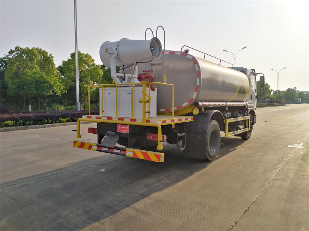 上裝配置:罐體容積 12立方,風送式霧炮機組30米,40米選擇,罐體采用國標Q235碳鋼材質(zhì),罐體厚度4MM,前后封頭5MM加厚型,罐體內(nèi)雙層隔板具有防波蕩作用,以減輕汽車行駛時罐內(nèi)液體沖擊;灑水車整車及外形尺寸嚴格按照**機動車公告制作而成;裝配大功率專用灑水泵,前沖、后灑、側噴、后平臺帶綠化灑水炮,灑水炮可全方位旋轉,可連續(xù)調(diào)成直沖狀、大雨、小雨、毛毛雨;配消防接口,自流閥,濾網(wǎng),帶自吸自排功能。前封頭帶水位計,后平臺主管路帶1寸澆花接口,后爬梯,帶1個消防接頭,帶1個自流閥,1個過濾裝置,其余標配。