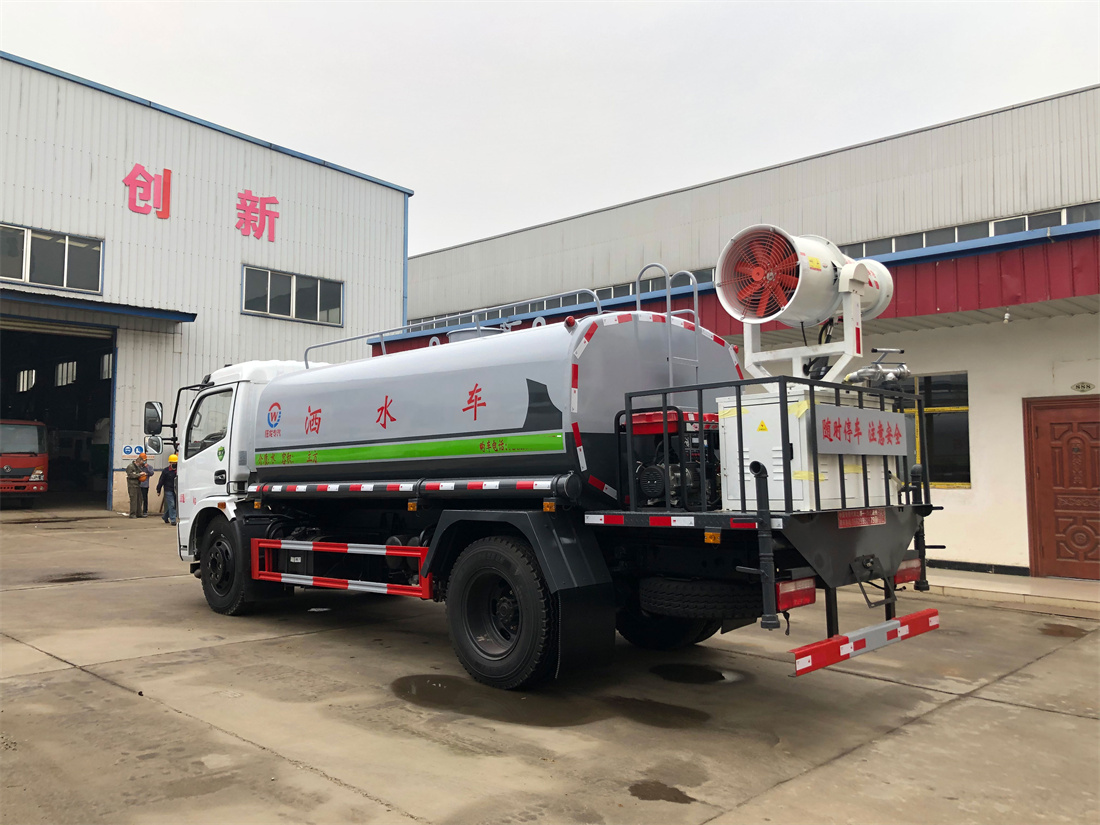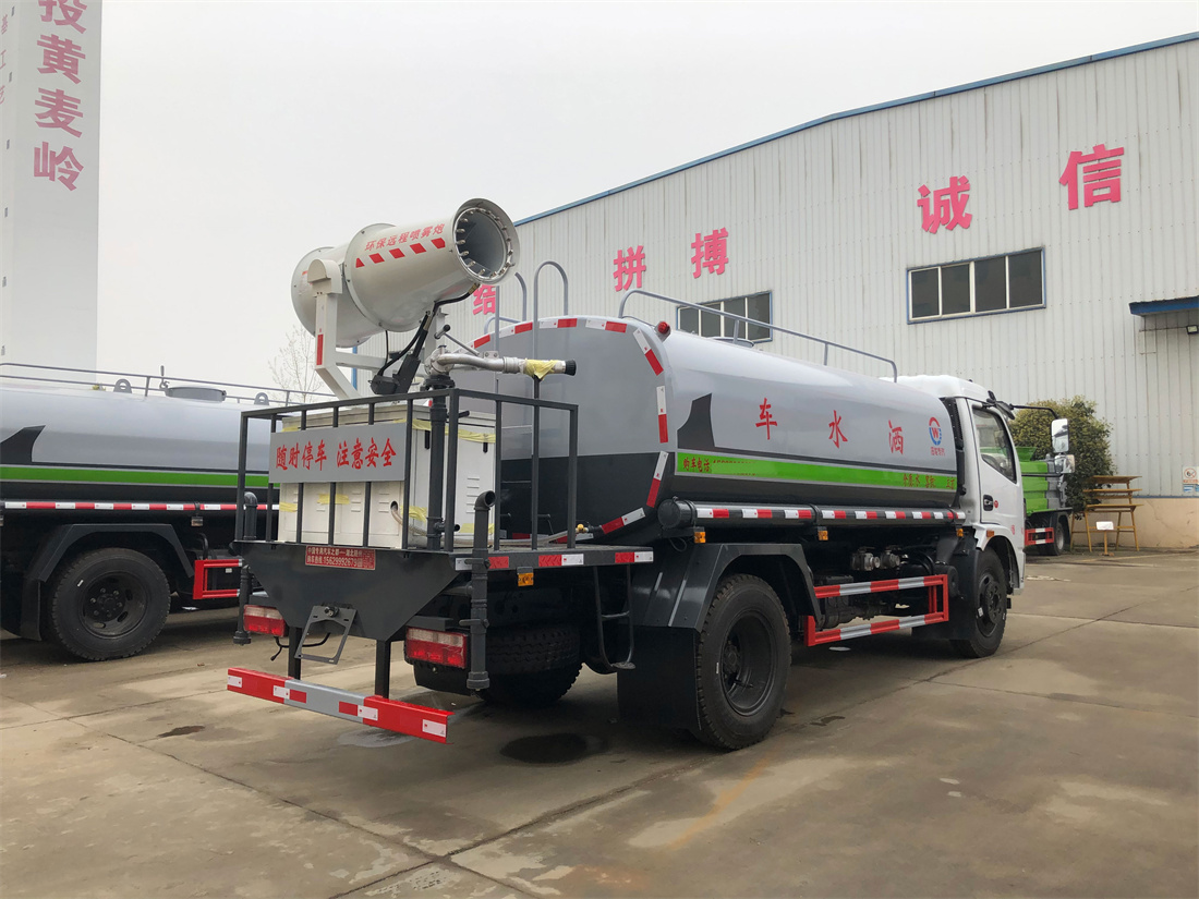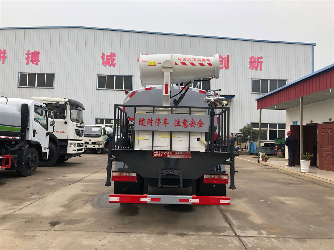 主要由發動機帶動變速箱,變速箱上安裝的取力器帶動灑水泵,灑水泵產生動力,將罐體內部的液體通過管網噴灑出去。工作范圍:自吸高度:≥7m,灑水寬度:≥14m,**大射程:≥28m;可調節成柱狀,射程≥28m;也可調節成霧狀,射程≥5m。
