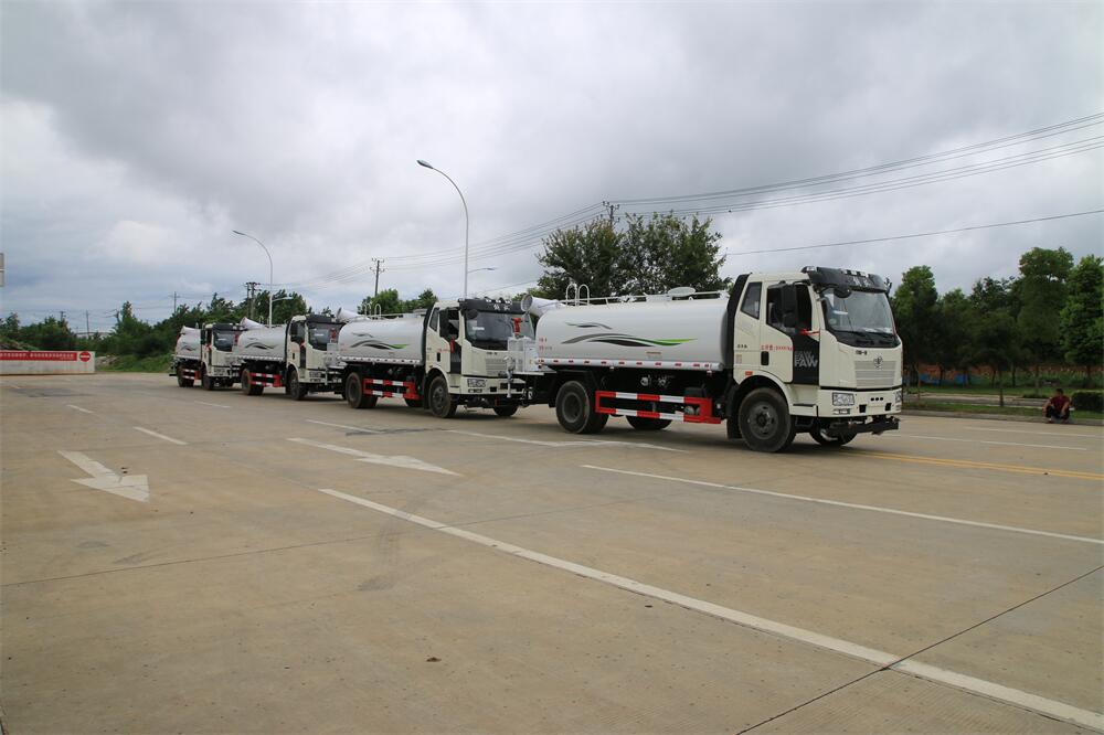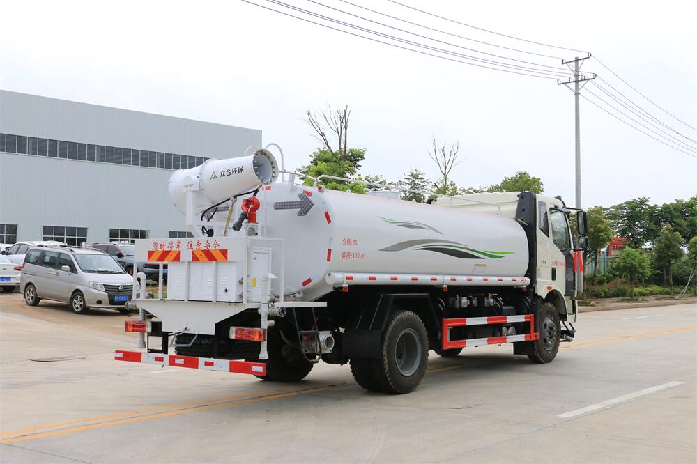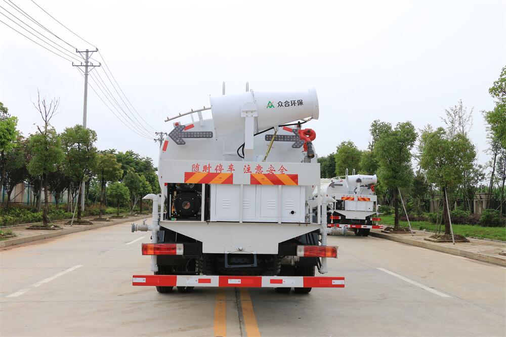 主要由發(fā)動機帶動變速箱,變速箱上安裝的取力器帶動灑水泵,灑水泵產(chǎn)生動力,將罐體內(nèi)部的液體通過管網(wǎng)噴灑出去。工作范圍:自吸高度:≥7m,灑水寬度:≥14m,**大射程:≥28m;可調(diào)節(jié)成柱狀,射程≥28m;也可調(diào)節(jié)成霧狀,射程≥5m。