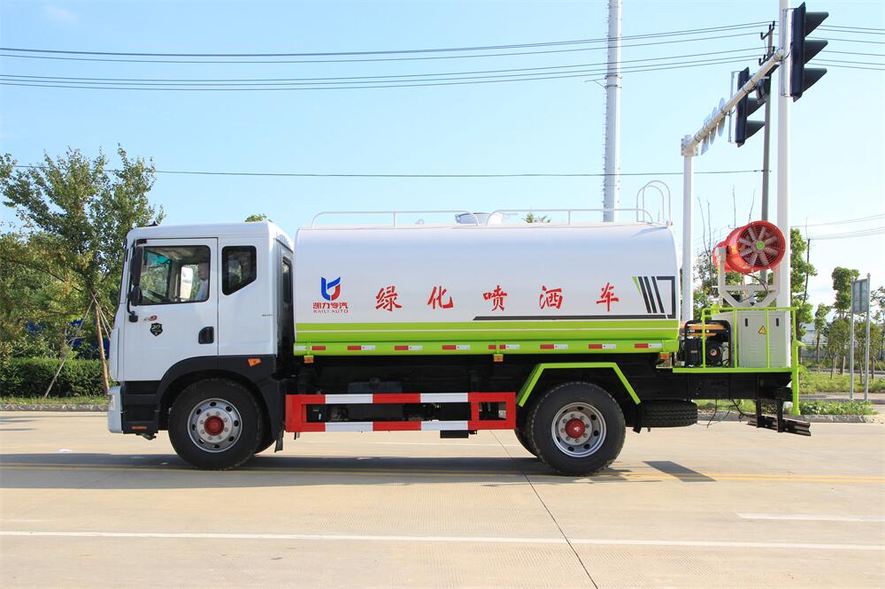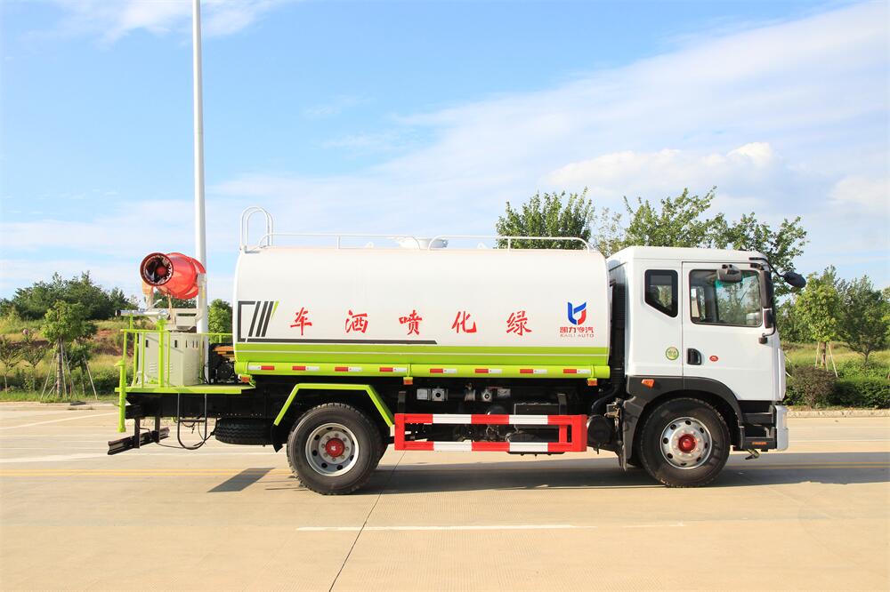 上裝配置:罐體容積 12-15立方,風(fēng)送式霧炮機(jī)組30米,40米選擇,罐體采用國標(biāo)Q235碳鋼材質(zhì),罐體厚度4MM,前后封頭5MM加厚型,罐體內(nèi)雙層隔板具有防波蕩作用,以減輕汽車行駛時罐內(nèi)液體沖擊;灑水車整車及外形尺寸嚴(yán)格按照**機(jī)動車公告制作而成;裝配大功率專用灑水泵,前沖、后灑、側(cè)噴、后平臺帶綠化灑水炮,灑水炮可全方位旋轉(zhuǎn),可連續(xù)調(diào)成直沖狀、大雨、小雨、毛毛雨;配消防接口,自流閥,濾網(wǎng),帶自吸自排功能。前封頭帶水位計,后平臺主管路帶1寸澆花接口,后爬梯,帶1個消防接頭,帶1個自流閥,1個過濾裝置,其余標(biāo)配。