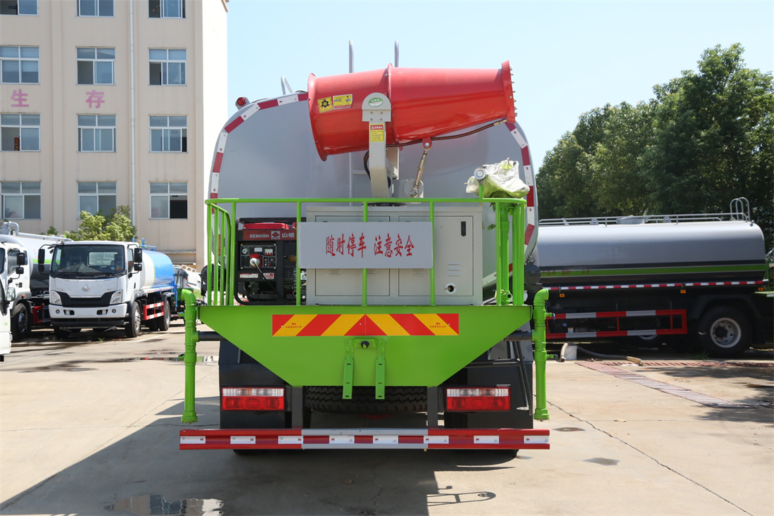 上裝配置:罐體容積 12-15立方,風(fēng)送式霧炮機(jī)組30米,40米選擇,罐體采用國標(biāo)Q235碳鋼材質(zhì),罐體厚度4MM,前后封頭5MM加厚型,罐體內(nèi)雙層隔板具有防波蕩作用,以減輕汽車行駛時(shí)罐內(nèi)液體沖擊;灑水車整車及外形尺寸嚴(yán)格按照**機(jī)動(dòng)車公告制作而成;裝配大功率專用灑水泵,前沖、后灑、側(cè)噴、后平臺(tái)帶綠化灑水炮,灑水炮可全方位旋轉(zhuǎn),可連續(xù)調(diào)成直沖狀、大雨、小雨、毛毛雨;配消防接口,自流閥,濾網(wǎng),帶自吸自排功能。前封頭帶水位計(jì),后平臺(tái)主管路帶1寸澆花接口,后爬梯,帶1個(gè)消防接頭,帶1個(gè)自流閥,1個(gè)過濾裝置,其余標(biāo)配。
