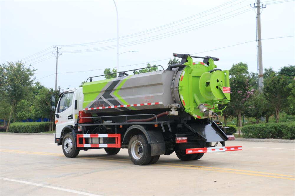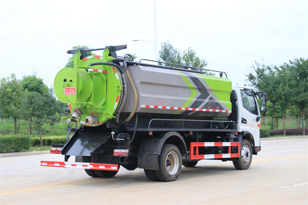 上裝配置:清水罐 3 立方,污水罐 7 立方; 清洗部份采用天津通潔,品孚,雙耀高壓泵, 壓力 24Mpa,流量 215L/min,配 60 米直徑 19 高壓管帶卷盤;吸污部份采用山東 SK-12 水循 環泵,高壓泵帶汽吹水。吸污罐帶舉升,后蓋 液壓開啟,罐體后尾部一個 DN150 排污口球 閥,一個 DN100 進污口球閥,一個視污窗,一 根 8m 吸污管,一套陰陽端,壓力表,防溢閥, 淋管裝置,高壓泵帶氣吹水。配 10 個組合噴 頭,另帶一個 60 公分手持洗車噴頭。