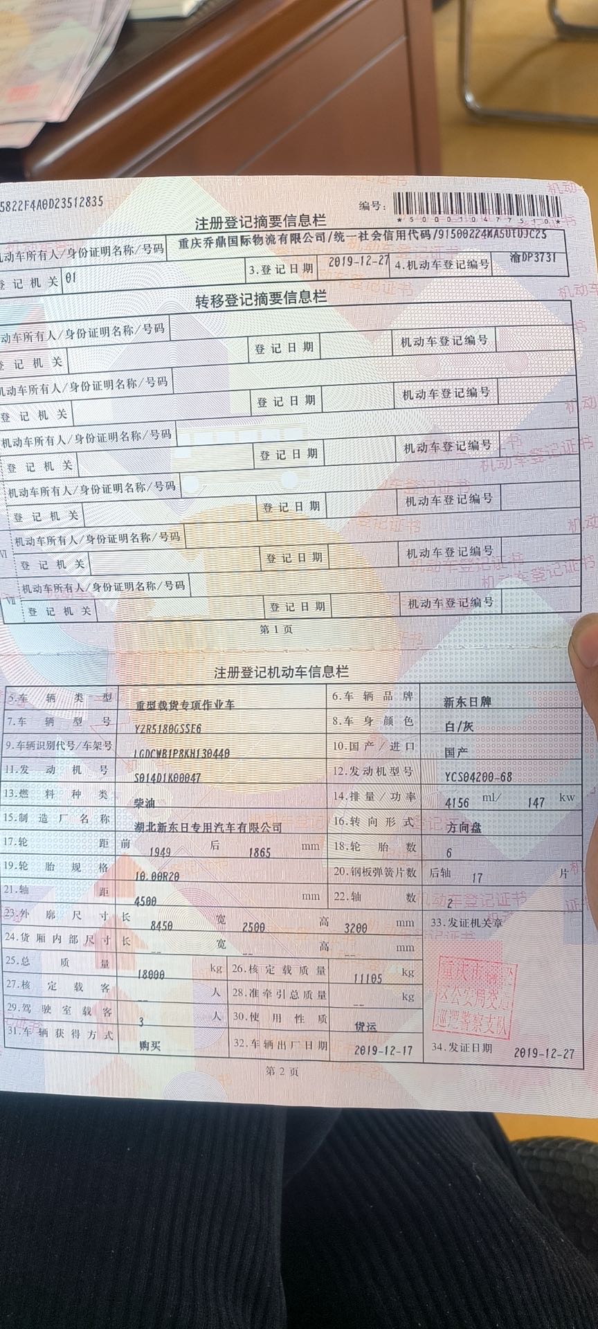 天龍后八輪勾臂(同款2臺) 2??年份:2019年5月 3??發動機:康機245馬力,國五 4??底盤配置:東風天龍底盤,5700軸距,7檔變速箱,1100鋼絲