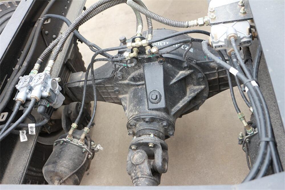 3、后雙橋同步碎石封層車采用內(nèi)舉升料斗就可實現(xiàn)石屑撒布施工,更方便涵洞施工、橋下施工、以及彎道施工;