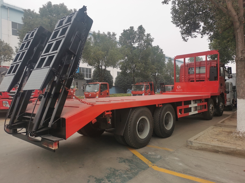 | 其他 | 備注:該車專用裝置為平板,用于工程機械和一些不可拆卸貨物的長途運輸.防護材料:Q235碳鋼,連接方式:左右側面與平板縱梁采用焊接連接, 后部防護與車架采用焊接連接,后部防護斷面尺寸(mm):50×120,后部防護離地高度(mm):490;隨底盤選裝同系列駕駛室、遮陽罩及保險杠,選裝不同樣式的爬梯.ABS系統(tǒng)生產廠家及型號為:廣州市科密汽車制動技術開發(fā)有限公司/CM4XL-4S/4K(4S/4M), 西安正昌電子有限責任公司/ZQFB-V, 浙江萬安科技股份有限公司/VIE ABS-Ⅱ;安裝具有衛(wèi)星定位功能的行駛記錄儀.發(fā)動機WP12.375E50 對應的油耗值為:40.48。整車長/軸距/后懸對應關系為(mm):11900/1800+4575+1400/2600,11300/1800+3975+1400/2600,10900/1800+3575+1400/2600,10400/1800+3000+1400/2675.選裝不同樣式的爬梯結構。 | ||